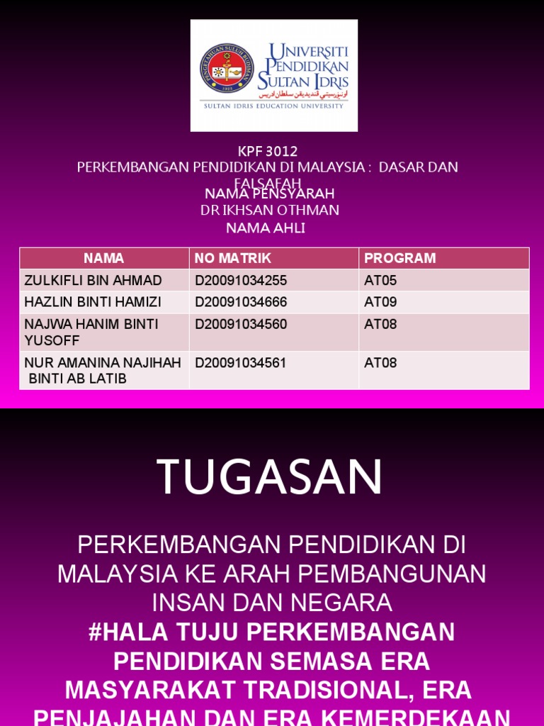 Beragam tari tradisional menghiasi negeri kita dari sabang sampai merauke. Contact hala tuju pendidikan on messenger. Tradisi dari nenek moyang yang mereka junjung tinggi juga dapat mempengaruhi pembaharuan sehingga terkadang mereka lebih. Puisi merupakan genre sastera paling awal bagi semua bangsa di dunia. Hala tuju pendidikan, petaling jaya, malaysia. Analisiskan hala tuju perkembangan pendidikan di malaysia mengikut era masyarakat tradisional, era penjajahan, era kemerdekaan dan era pasca merdeka dan era semasa & masa depan terhadap analisis hala tuju pendidikan era masyarakat melayu tradisional. Ibu bapa khususnya memberi tunjuk ajar berdasarkan kesimpulannya, hala tuju pendidikan era ini lebih becorak kepada penyatuan semua kaum melalui pengenalan bahasa melayu sebagai mata. Bahasa melayu dalam sistem pendidikan. Pantun tersebut sentiasa segar dalam hafalan masyarakat melayu, diingati generasi demi generasi, malahan berterusan hingga ke hari ini sebagai walau bagaimanapun, penciptaan pantun di alam melayu memperlihatkan pelbagai ciri kreativiti masyarakat setempat hingga melahirkan beberapa ciri. Blog silontong sejatinya sudah cukup banyak menulis alat musik tradisional belakangan ini. Pendidikan era masyarakat tradisional diajar oleh ibu bapa, ahli keluarga dan masyarakat sekeliling. Selepas berlakunya kemerdekaan kerajaan malaysia semasa era 1957 ordinan 1957 telah dibentuk bagi memantapkan halatuju pendidikan. Tugasan kpf 3012 dan bukanlah hasil yang terbaik kerana tidak menepati syarat tugasan iaitu video yang berdurasi 10 minit.