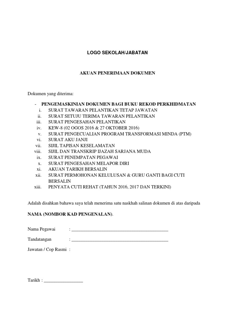 Contoh borang akuan penerimaan surat. Check spelling or type a new query. Maybe you would like to learn more about one of these? We did not find results for: