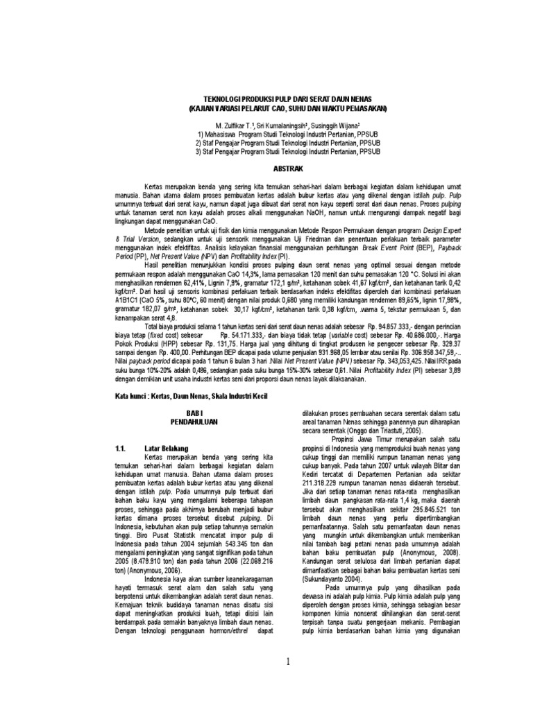 Bagi penghasilan kertas daun nanas, ia digunting dan direndam. 108 pembuatan pulp kraft dari kapuk dan serat daun nanas sebagai bahan baku kertas khusus kraft pulp made from kapok and pineapple leaf fiber as raw material for specialty paper putri dwi sakti kathomdani, susi sugesty balai besar pulp dan kertas Penghasilan kertas daun nanas dihasilkan melalui kaedah kimia dan mekanikal. Pada penelitian ini dilakukan proses pemutihan dengan variasi waktu dan Balai penelitian tanaman tembakau dan serat.